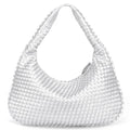 With a spacious body and sturdy shoulder strap, the Aria Woven Luxe Bag fits comfortably under your arm or in your hand. The structured shape and wide opening make it easy to keep your essentials organized and stylishly within reach.