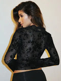 Mooie basic kanten top met knoopjes en lange mouwen. De top is gemaakt van een zacht materiaal dat zeer comfortabel is om te dragen. De top heeft een kanten rand.
